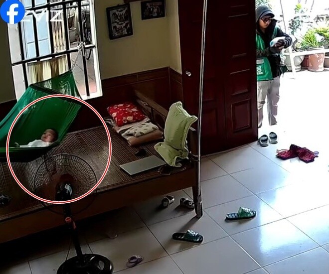 Video được chia sẻ bởi tài khoản Thế Cường, trích xuất từ camera an ninh của một gia đình. Trong clip, một bà mẹ để con sơ sinh nằm trên võng rồi vào phòng lấy tiền khi shipper đến giao hàng. Có lẽ cảm nhận được sự vắng mặt của mẹ, em bé bật khóc nức nở. Người mẹ dù nghe thấy tiếng con cũng chỉ có thể trấn an từ xa.