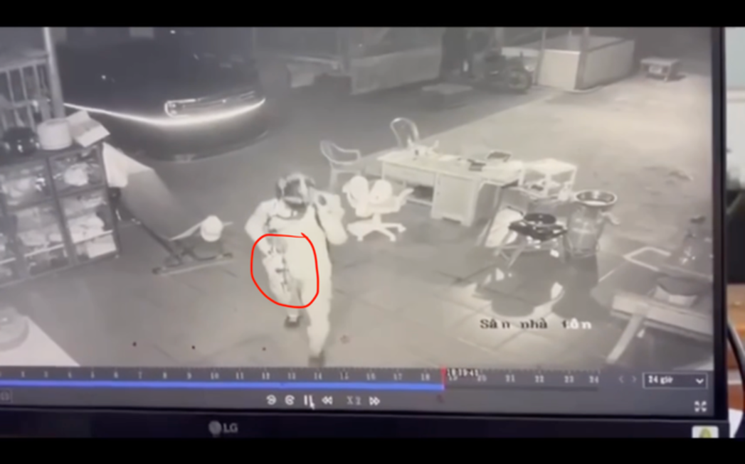 Theo hình ảnh từ camera ghi lại, trong căn nhà nơi phát hiện 3 người tu vong, có 1 người đàn ông lưng mang balo, tay cầm vật giống s: úng tự chế. Người này mặc trang phục che kín, đeo khẩu trang.