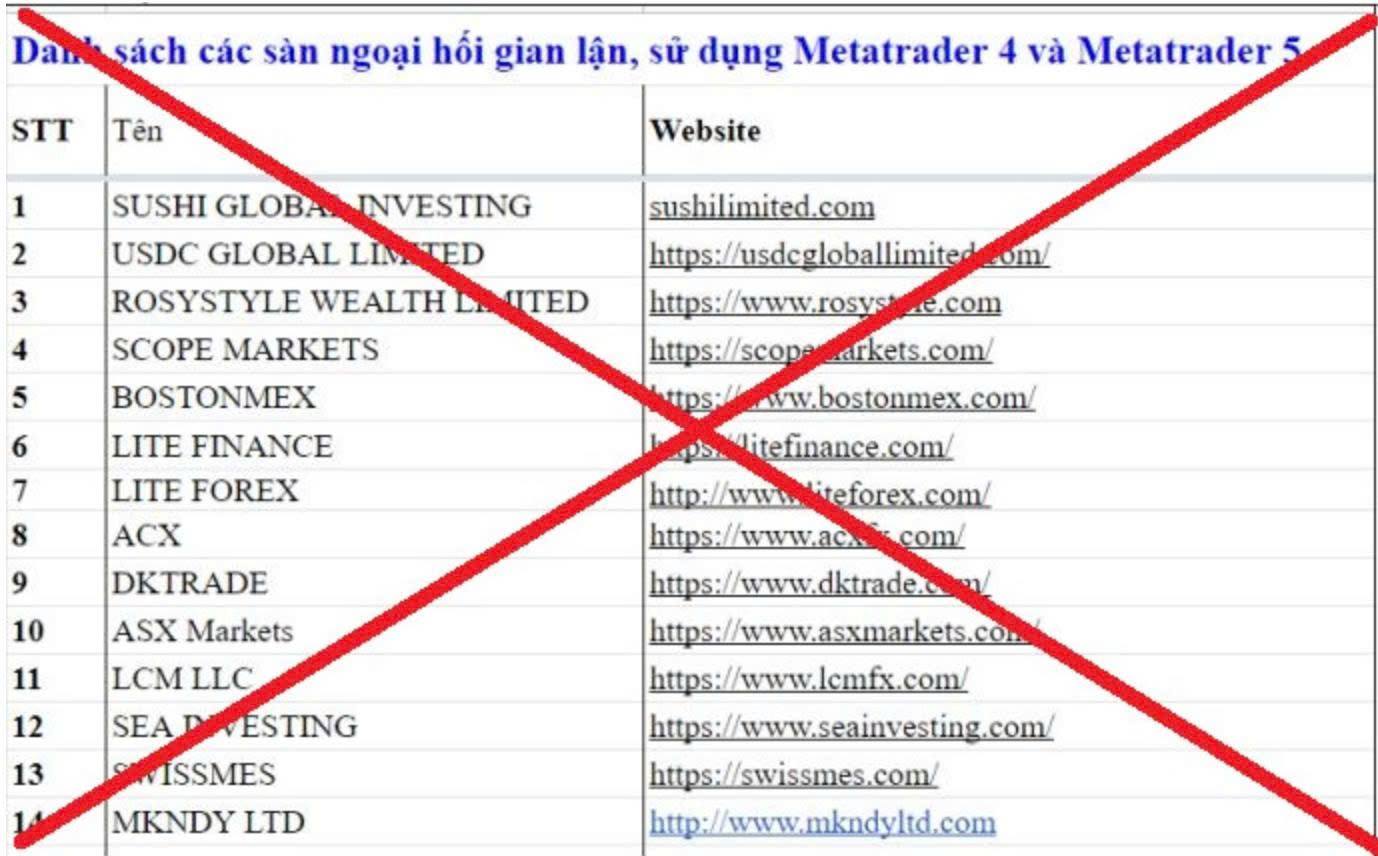 Danh sách các sàn giao dịch lừa đảo sử dụng nền tảng giao dịch MT4, MT5. Ảnh: CA Lào Cai