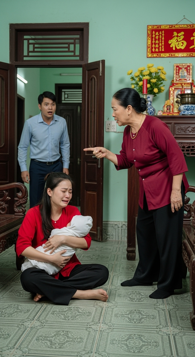 Tôi lao đến, đỡ vợ dậy, nhìn vết đỏ trên má cô ấy mà tim như bị ai bóp nghẹt. Mẹ đứng bất động, mặt tái đi, bàn tay run run như không tin vào chính mình. Căn nhà nhỏ im phăng phắc đến ngột ngạt, chỉ còn tiếng con khóc ré lên trong nôi.